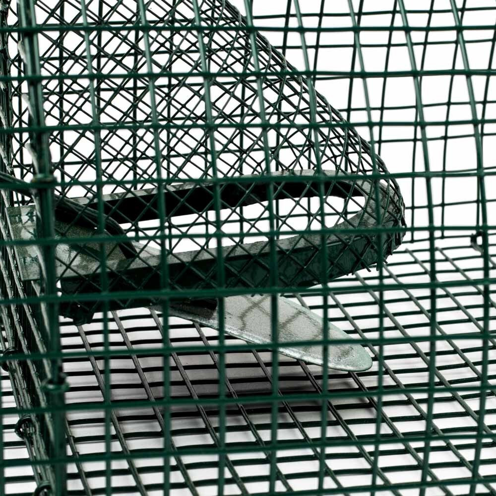 - Zseniális, kétkamrás kialakítás: A patkány bemegy az első kamrába a csali illatára, majd egy egyirányú, billenő ajtón keresztül átjut a másodikba. Innen már nincs visszaút! Az okos mechanizmus automatikusan visszaáll, és már várja is a következő áldozatot.